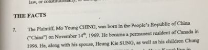 此案还披露,程慕阳在1996年获得加拿大永久居民身份,而不是此前被广泛报道的2000年。他和他的妻子Heung Kie Sung有3个孩子,其中1个生于中国大陆,1个生于香港,1个生于加拿大​​。程慕阳2001年第一次申请加拿大公民身份,但失败了,2005年,他再次提出申请。