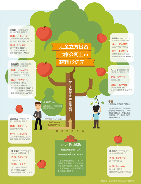 而汇金立方更是早在2011年即大规模卖出乐视网股票,2013年半年报中已经看不到它的踪迹,保守计算其收益超过3亿元。