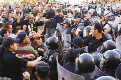 示威者与警察爆发冲突 示威民众以下跪的方式,要求总统下台 穆巴拉克的小儿子贾迈勒穆巴拉克 由于不满政府腐败、物价上涨和失业率高等问题,埃及多个城市25日发生民众大规模集