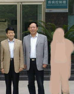 图:山西省卫生厅厅长高国顺(左)与腐败官员栗文元在山西疾病控制腐败楼前 合影留念