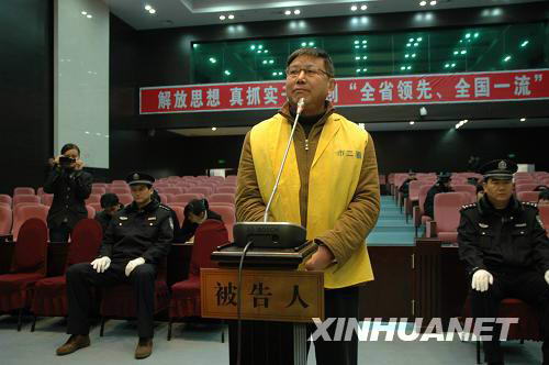 这是吕金宝站在被告人席上(12月16日摄)。当日,安徽马鞍山市原副市长吕金宝受贿案在合肥市中级人民法院一审宣判。吕金宝以收受赌资、装潢款、感谢款等名义,受贿人民币150多万元、美元9500元,被判处有期徒刑12年6个月。新华社记者 程士华 摄