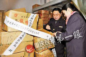 执法人员正在查封过期板鸭