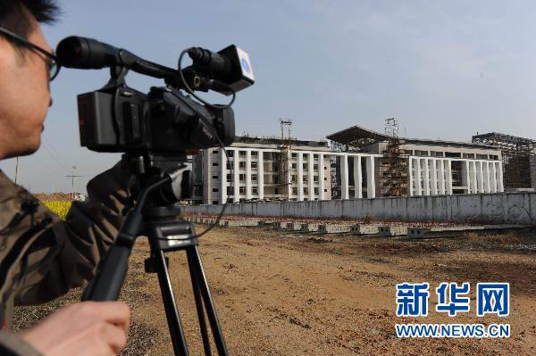 有关调查组称确有违规情况 3月25日,一名记者在拍摄基本完工的望江县办公楼。近日,有网友发帖对地方政府豪华办公大楼进行集中曝光,其中,安徽省安庆市望江县作为一个财政穷县竟在建“超过8个美国白宫”的办公楼。对此,安庆市联合调查组回应称,从他们调查结果来看,办公楼建筑面积不超标,但确实存在项目审批手续不全、操作不规范、超标准装潢等问题。新华社记者 李健摄