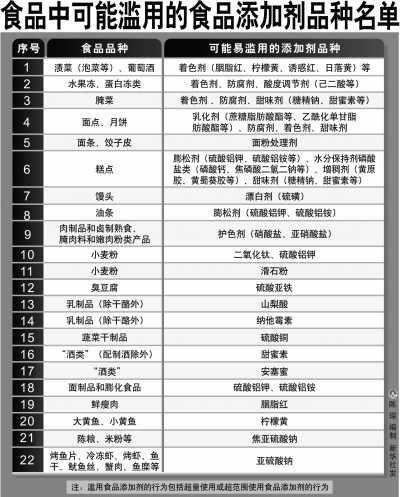 国务院食品安全委员会办公室公布的食品中可能滥用的食品添加剂品种名单。新华社发