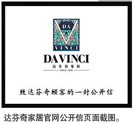 针对央视曾报道东莞长丰家具有限公司为达芬奇生产意式家具,达芬奇家居在公开信中声明:达芬奇从来没有销售过由长丰公司或其他任何一家中国公司生产的、标有意大利品牌的家居产品。达芬奇从未伪造过任何报关单或原产地证书。