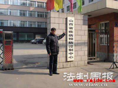 举报人陈涛安在山西疾控中心门前 宋锋/图