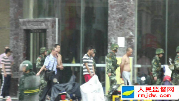 8点多钟,警方将10多人带出大楼,蹲在楼下空地,一个小时后又有一批人员被警察带出。人民监督网记者大约统计了一下人数,足有40多人。