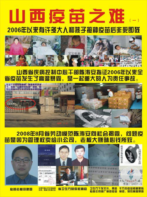 最值得一提的是,有这样一个受害家庭,孩子应接种麻腮风疫苗得了重病,孩子的父母都是公安人员,他们依据陈涛安的指证,向山西省卫生厅信访办,提交解决问题的要求,硬是被卫生厅的官员和保安们,从楼上赶下来轰出大门,他们从来也没有受到这样的羞辱,决定到法院起诉卫生厅,但因是国家公职人员,顾忌政府部门的面子,不愿意开庭审理,真是很尴尬的局面。