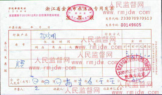 图: 瑞安市委书记蒋珍明第四张无日期宾馆发票