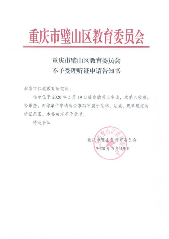 璧山区教委对于北京仁爱教育研究所的异议回复。受访者供图